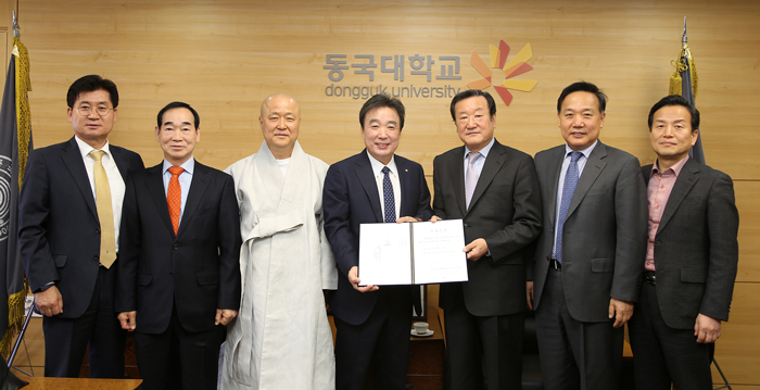 지난 3월, 제28대 동국대학교 총동창회장으로 선출된 박대신 회장은 4월 8일(월) 동국대 윤성이 총장을 만난 자리에서 “후배들을 위한 기부에 동참하고 싶다”며 동국사랑1.1.1캠페인 정기기부 회원 신청서를 전달했다.