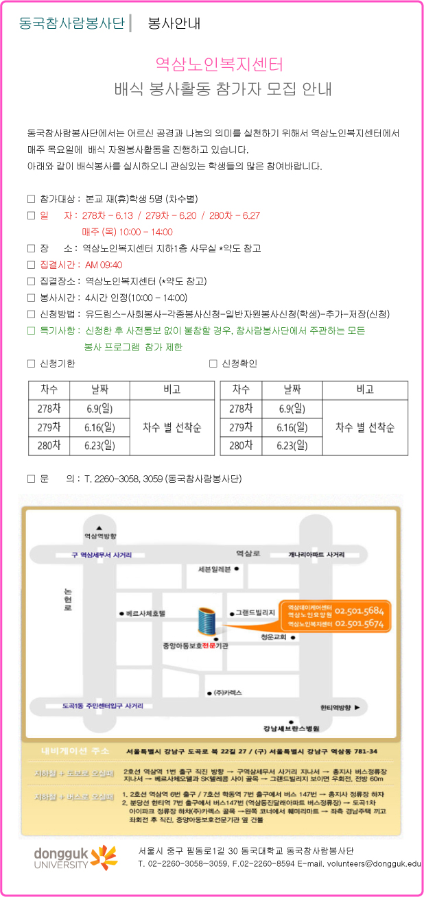 [참사람봉사단] 6월 역삼노인복지센터 배식 봉사활동 참가자 모집 안내