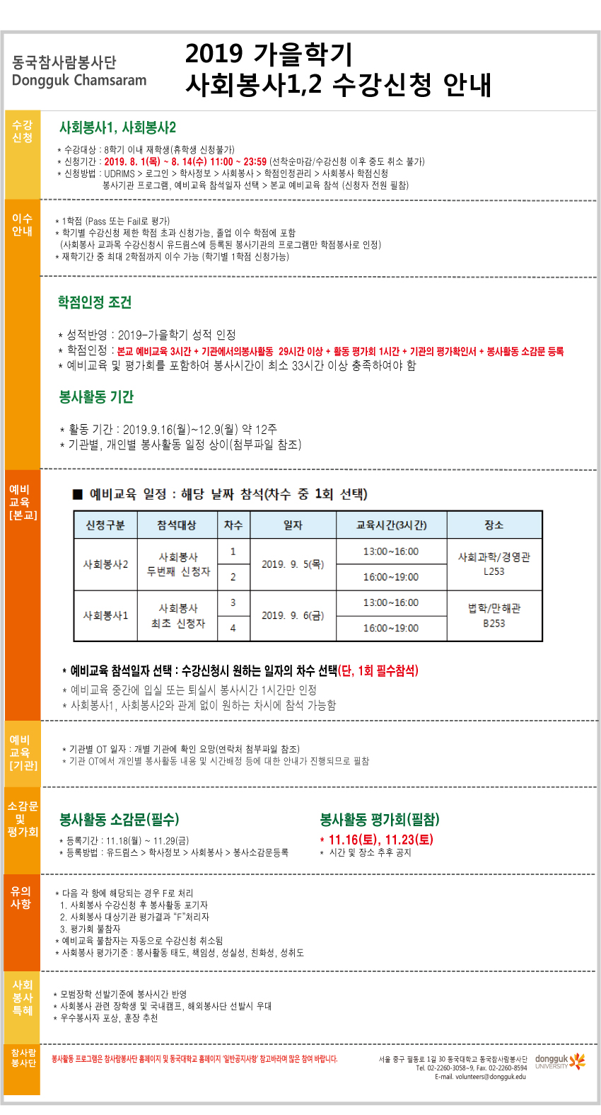 [참사람봉사단] 2019-가을학기 사회봉사교과목 수강신청 안내