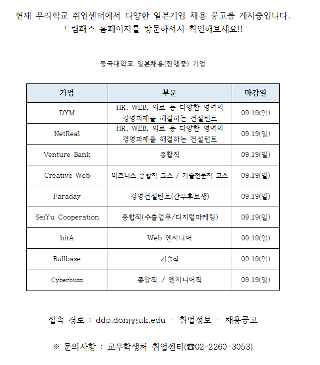 [일반공지] [취업센터] 일본기업 채용안내
